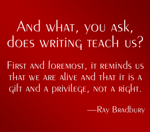 So yes, there are days when my best writing amounts to a single, brilliantly written sentence, and there are days when whole chapters are completed. In either case, I count myself as successful because I’m more of a Ray Bradbury kind of writer when it comes to word counts: