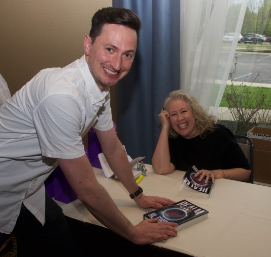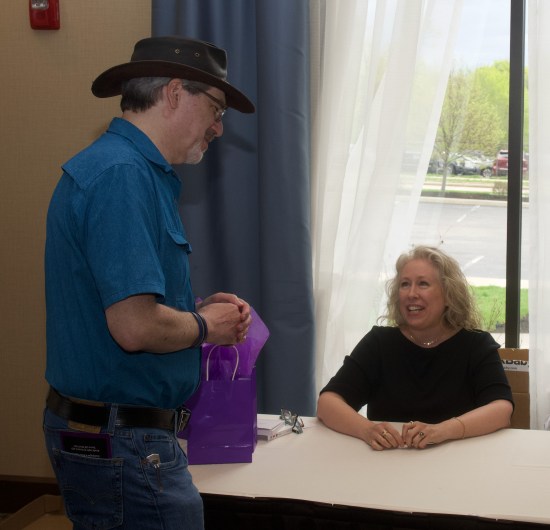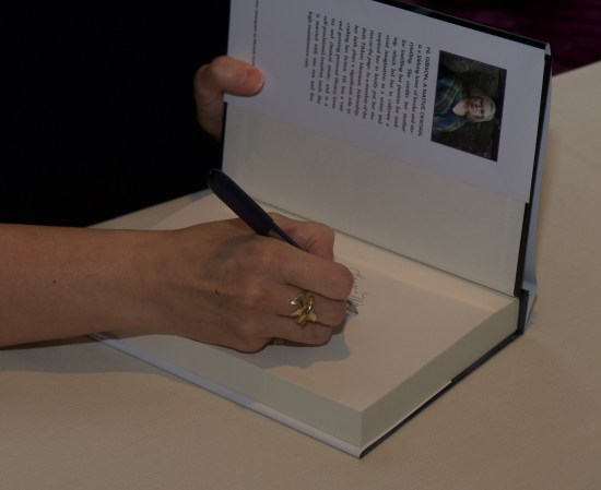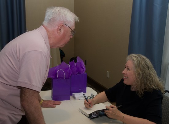 Autographing my novel, Realm, for guests.