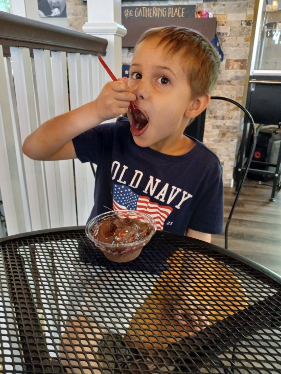Another great thing that happened this summer was a visit from my grandbaby, Jacob. We started our day at Chick-fil-A and the indoor playground; hit Kohl’s for a new food processor to make treats; indulged in ice cream at Therapy Ice Cream & Coffee Bar; baked our version of goldfish crackers but opted for a hippo, possibly a stegosaurus, cutter; stopped by an outdoor playground; whipped up a batch of homemade Play-Doh; had dinner at Grinder’s; and rounded out the day with a game of SORRY! Keeping up with a five-year-old is great exercise. Dealing with post-Jacob blues the next day is rough.