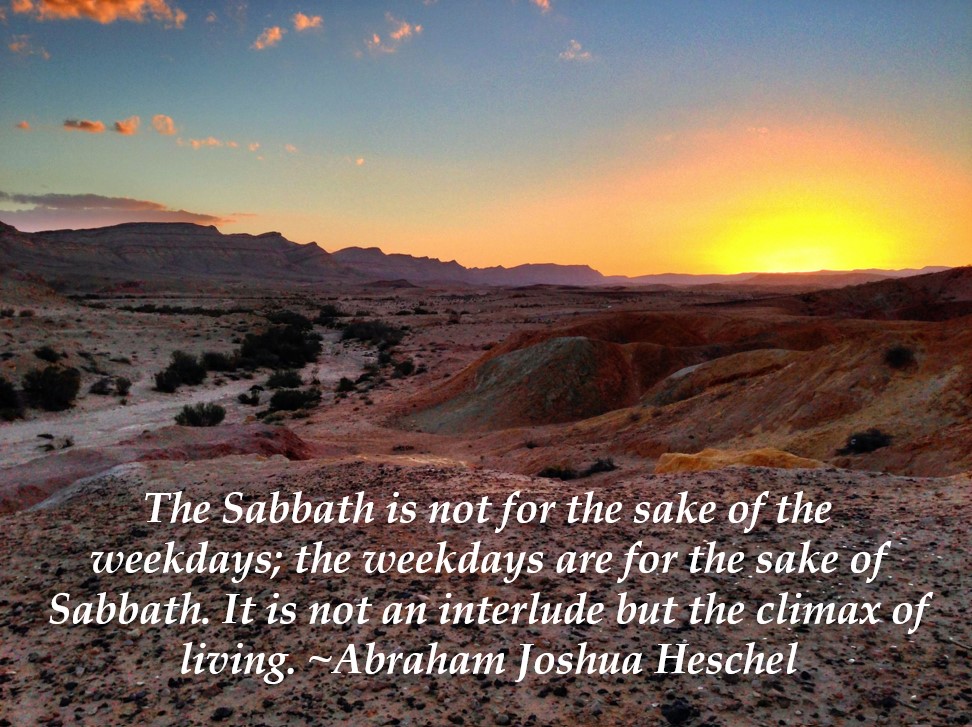 “To gain control of the world of space is certainly one of our tasks. The danger begins when in gaining power in the realm of space we forfeit all aspirations in the realm of time. There is a realm of time where the goal is not to have but to be, not to own but to give, not to control but to share, not to subdue but to be in accord. Life goes wrong when the control of space, the acquisition of things of space, becomes our sole concern.” ~ Abraham Joshua Heschel, The Sabbath