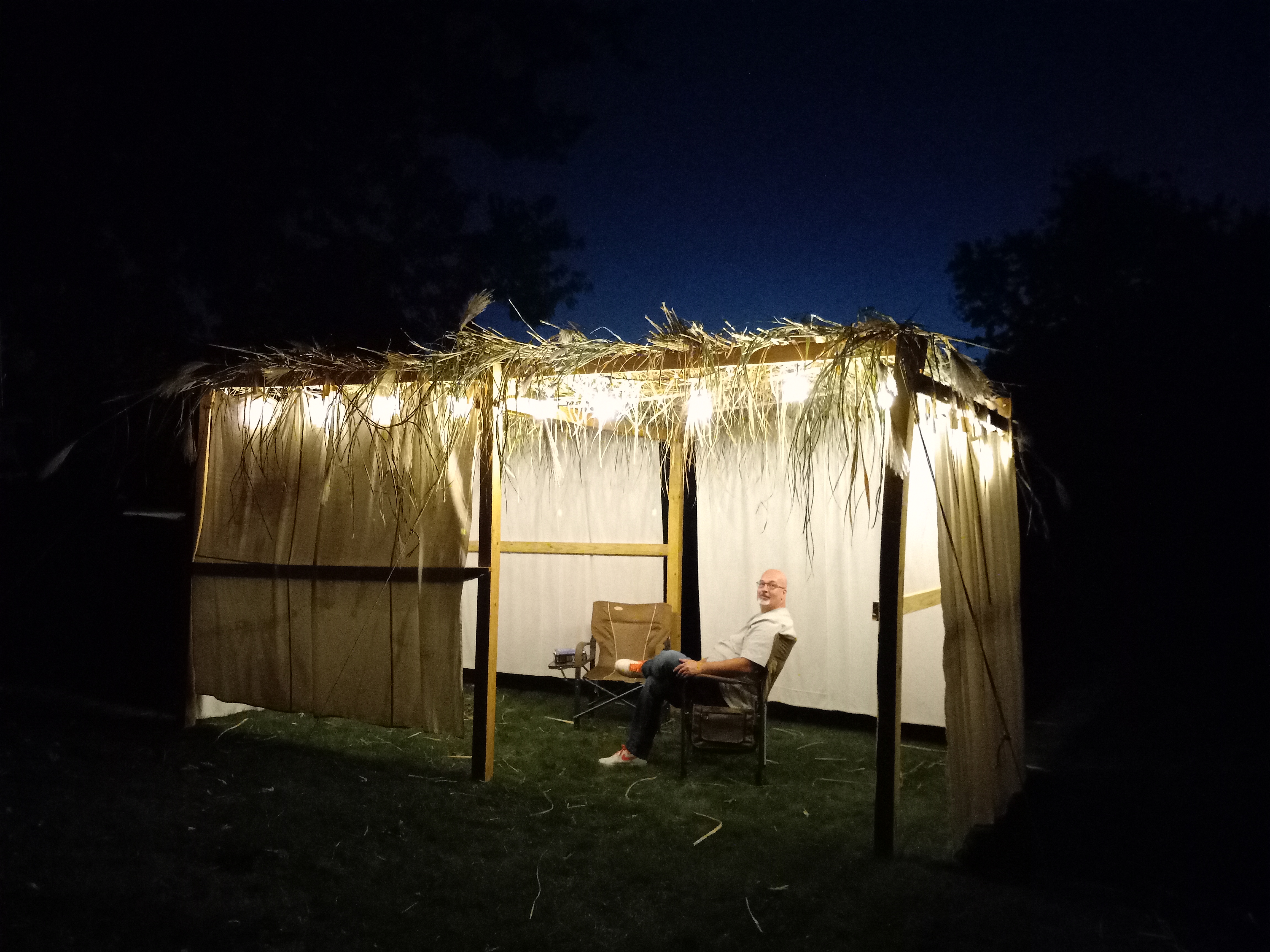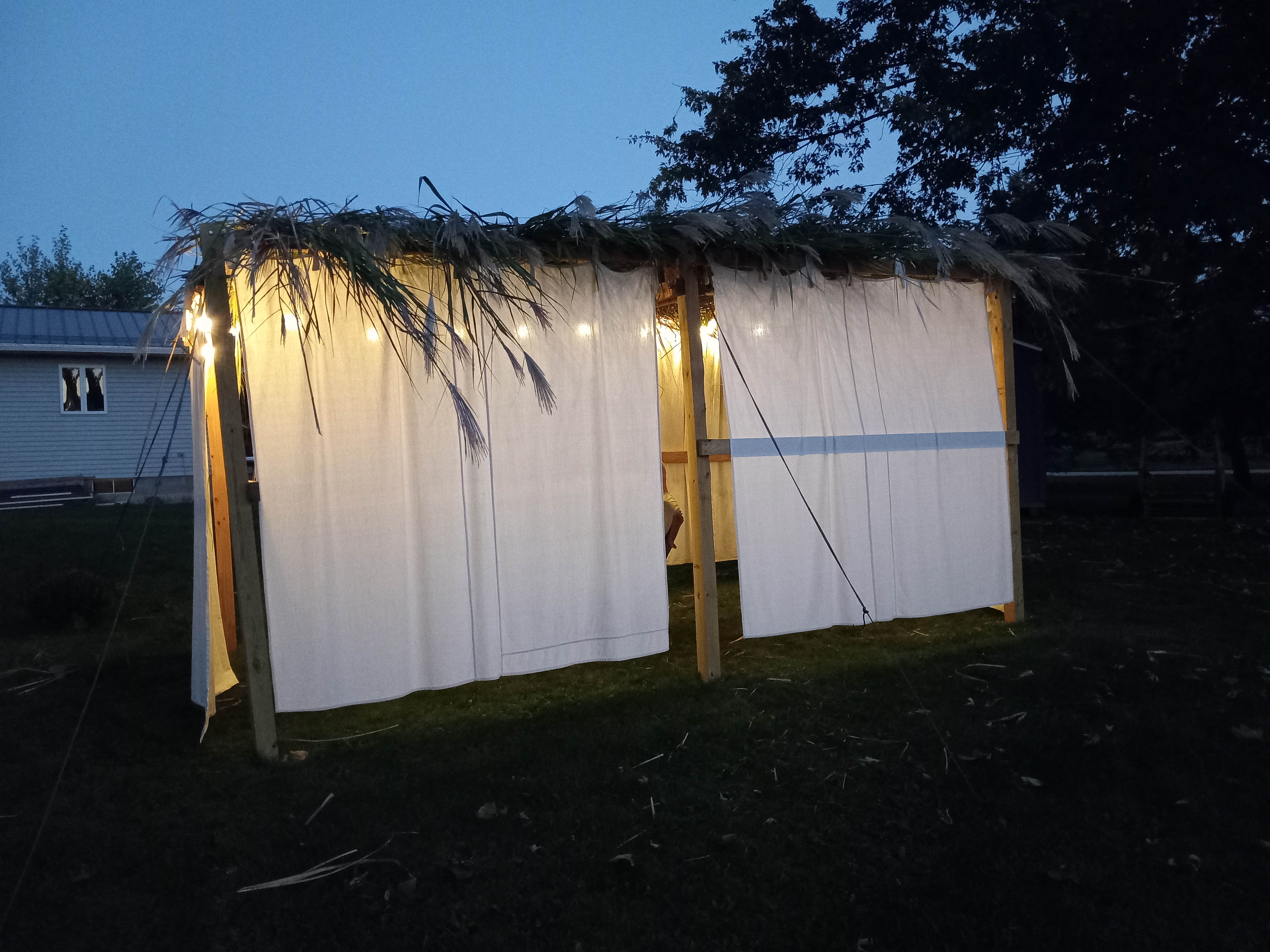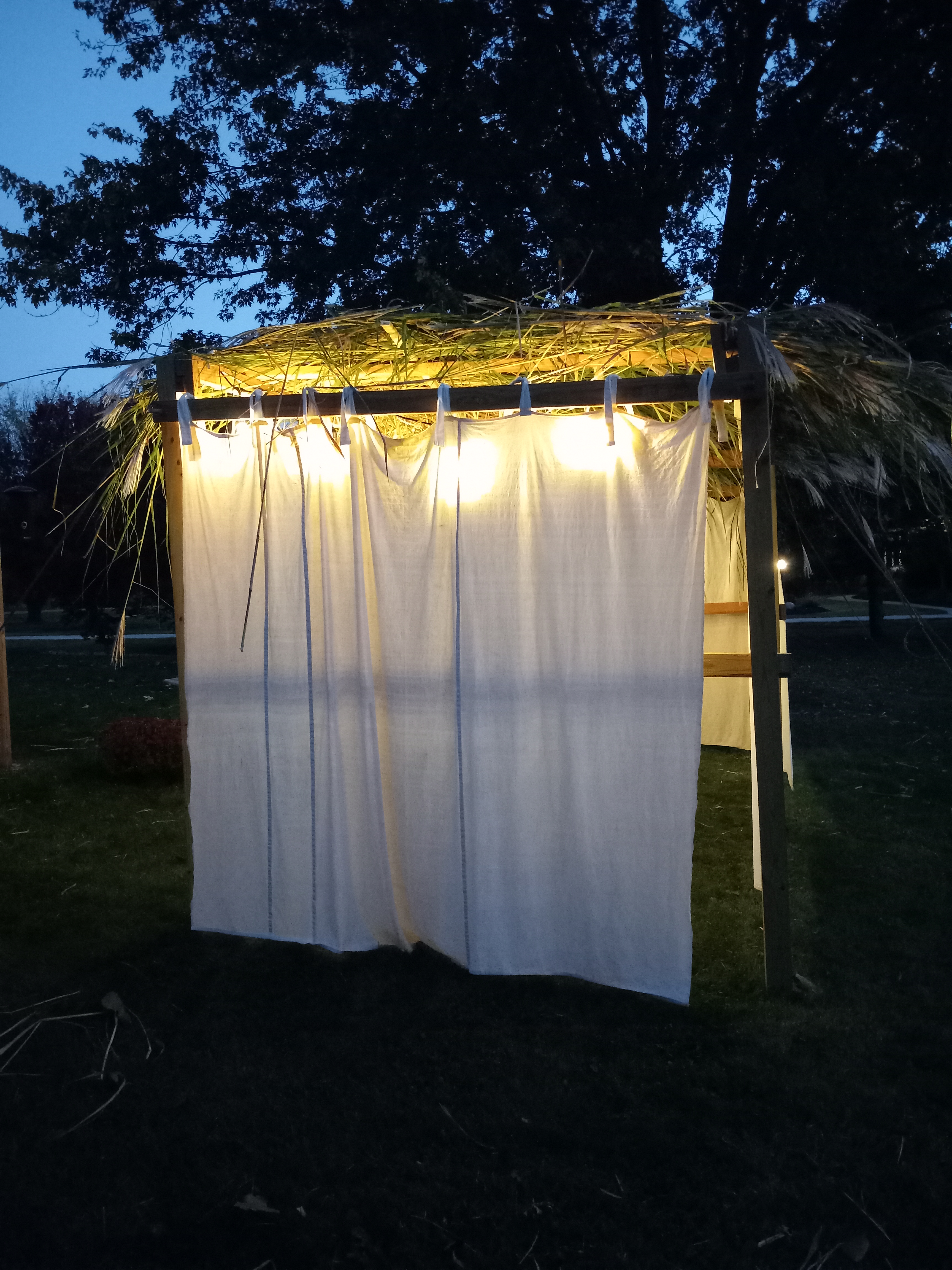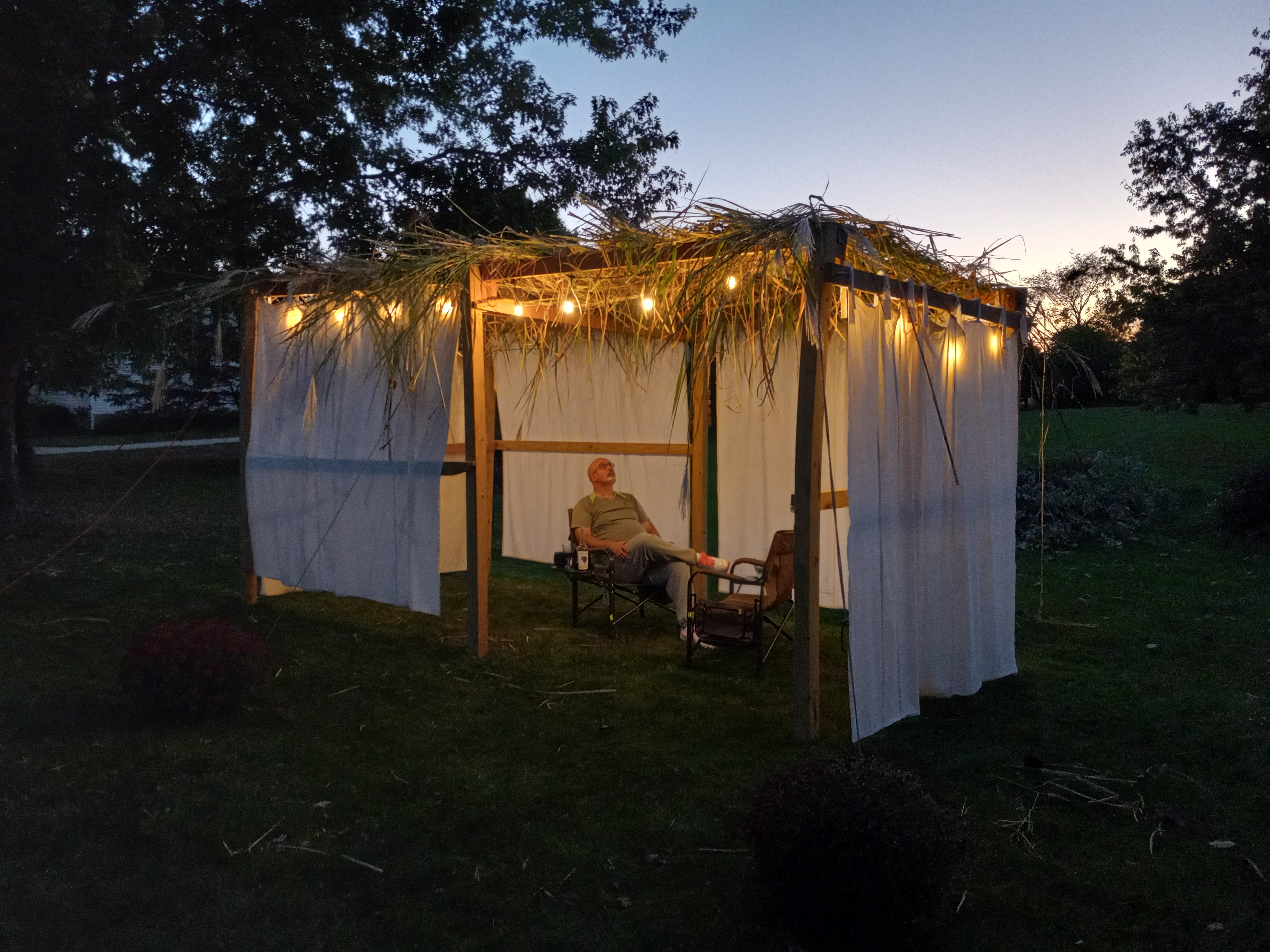 The Gibson Household celebrated Sukkot during what was an unusually warm week of October. The sunshine was amazing, and we relaxed in our sukkah during the day and long into the evening.