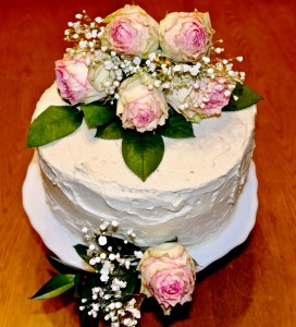 The wedding cake I had in mind for the couple had to be completely homemade. Box mixes wouldn’t do, and the grandiose cakes created by bakers to satisfy the whims of brides today wouldn’t be believable. Unfortunately, neither my mother nor I had a recipe for a homemade white cake. Scandalous, I know.