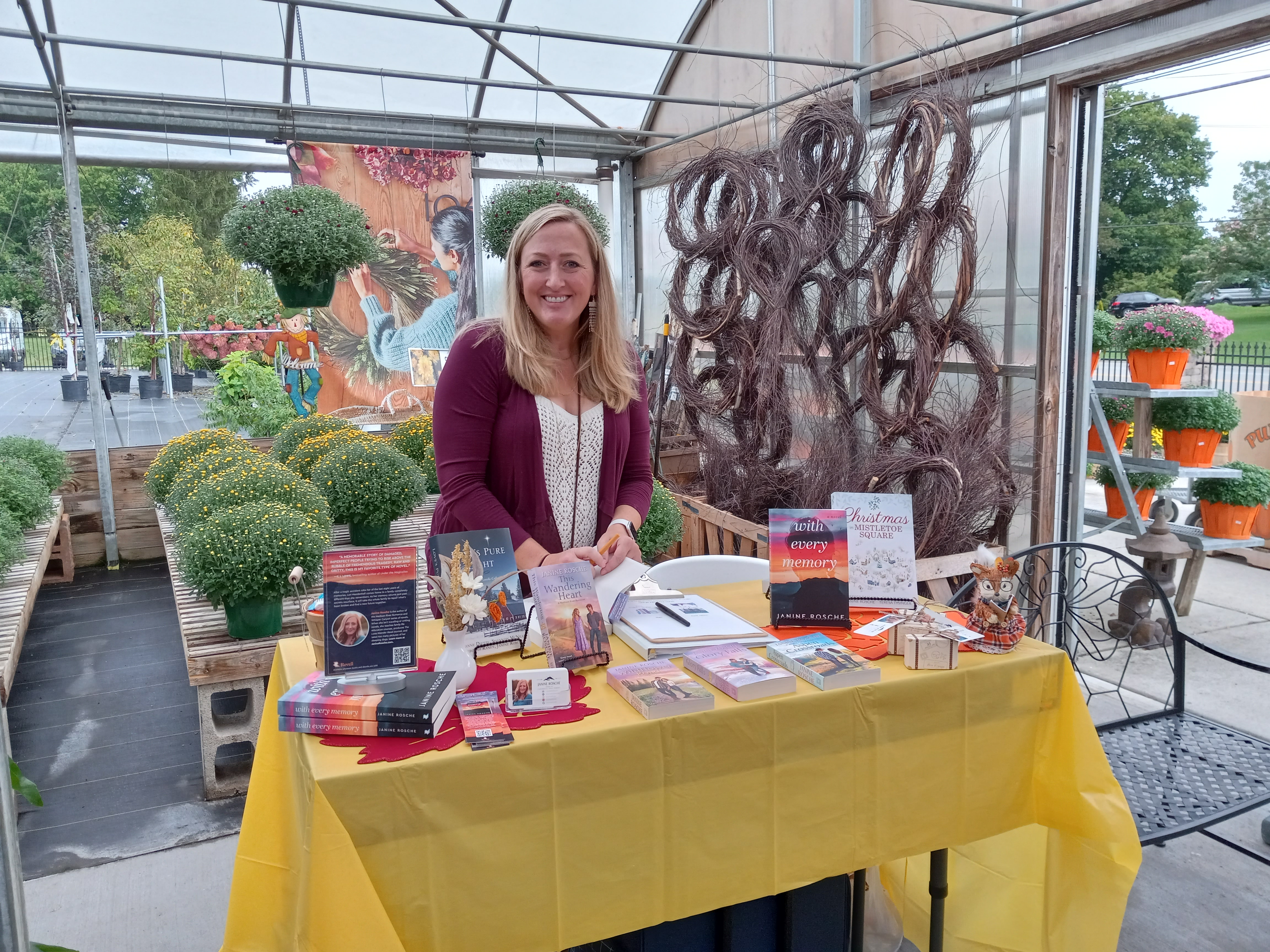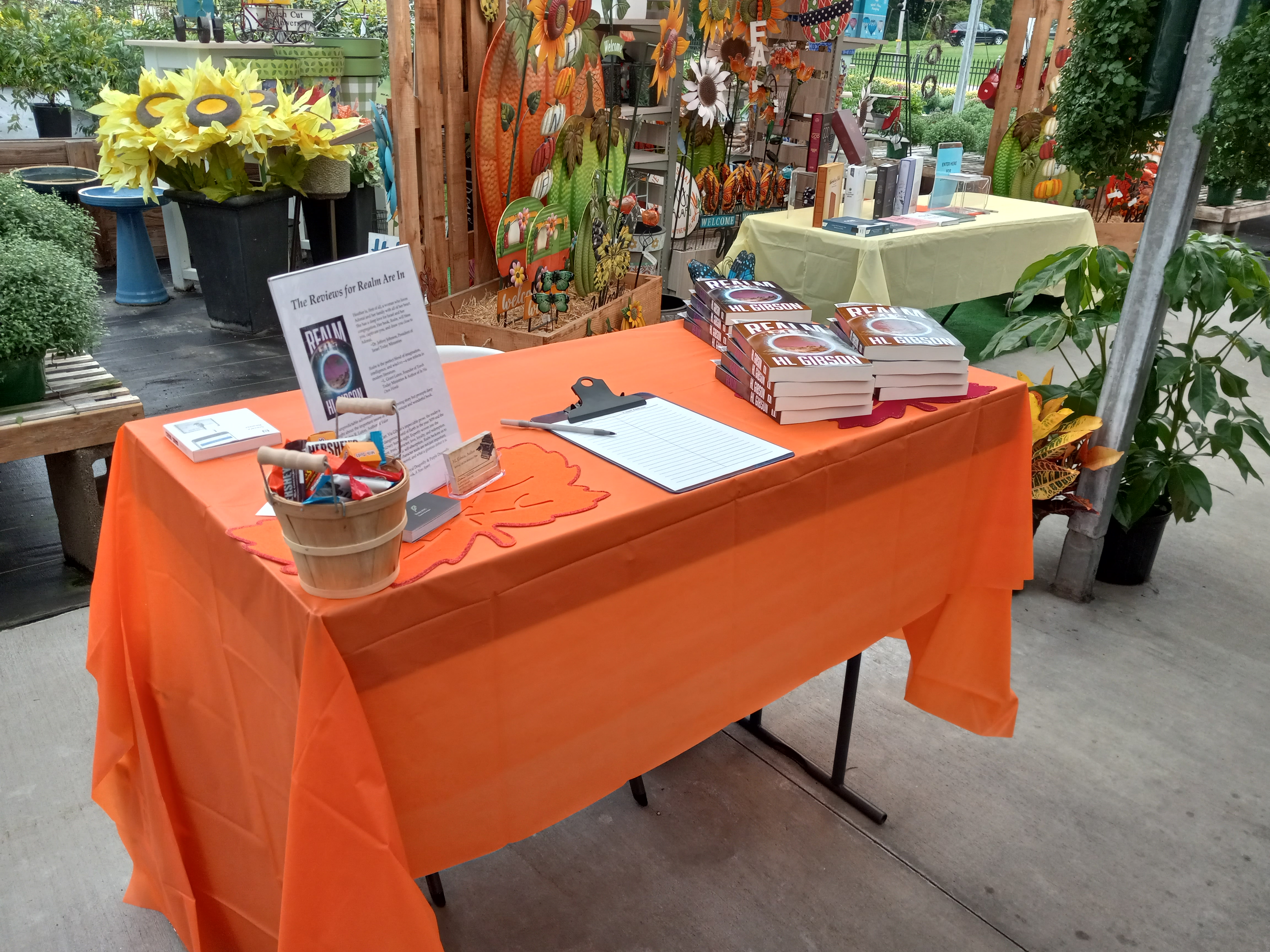 My next event was my first multi-author book signing at Kern’s Home & Garden & Christian Bookstore. I coordinated with nursery owner, Heidi Flack, and the authors who participated, to create some lovely advertising for the Fall Open House. The weather was perfect on both days of the event, and the customers enjoyed having us there.