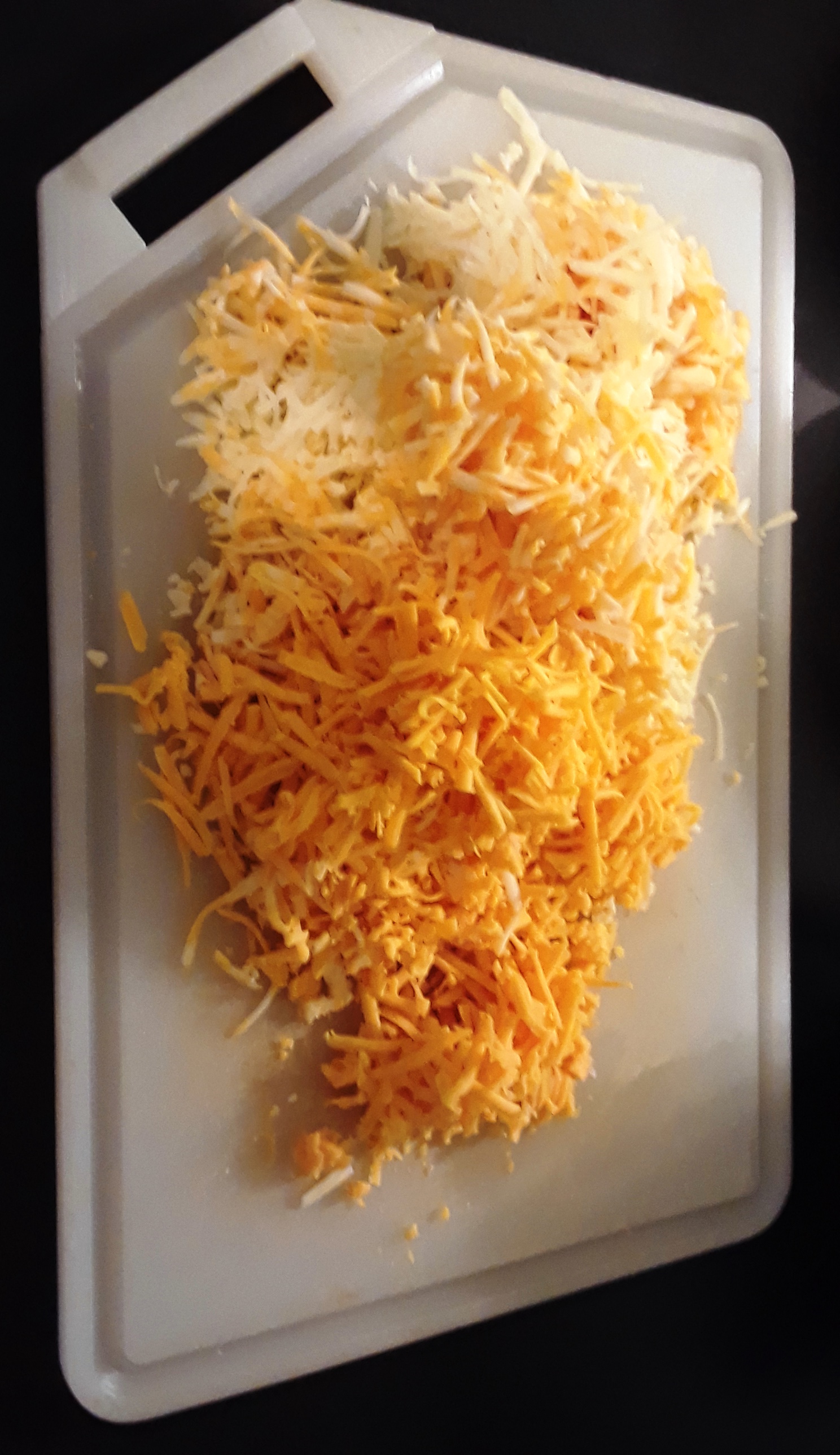 *Side note: I start with blocks of cheese over pre-shredded because it’s creamier. The pre-shredded stuff always seems dry to me. Also, I suspect the quantity isn’t exactly what the packaging says. You’ll want at least six cups of cheese, however, I’ve found that a little more never hurts which is another reason I prefer blocks of cheese. When choosing cheeses, I like to include at least one orange cheese to make it look like traditional, American macaroni and cheese.