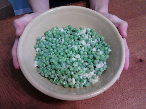 From Chapter One, I featured fried eggs and potatoes, ham and redeye gravy, buttermilk biscuits with butter and jelly, creamed peas, fried apples, and canned peaches for the breakfast celebrating my protagonist’s birth.