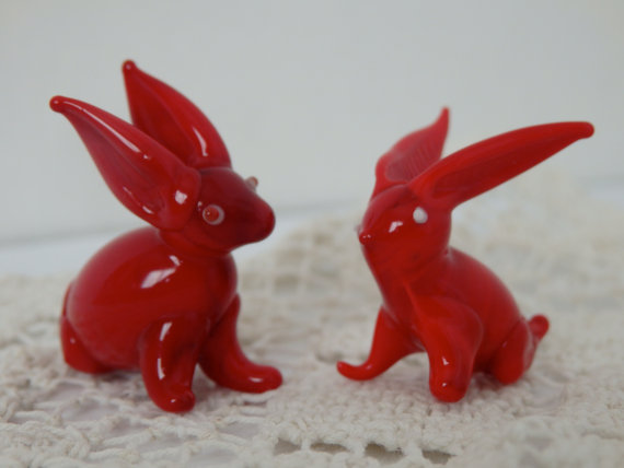 My great aunt never hesitated to let me play with what I believed were her most treasured possessions. For this reason, I took great care not to break any of the inch and a half tall animals in the collective herd. There was a goose and a deer among the group, but my favorite was the solid red, blown glass rabbit with two miniscule dollops of white glass for eyes. She was perfect.