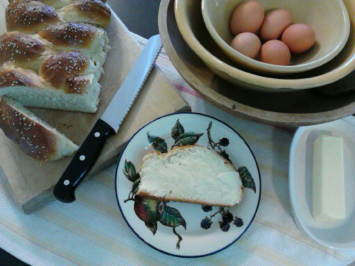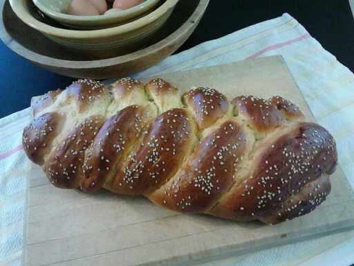 Brush each braided loaf with an egg wash (beaten egg with a little water to thin it). Place the braided loaves on a non-stick cookie sheet with parchment paper or a cooking mat on it and sprinkle liberally with poppy seeds, sesame seeds, or slivered almonds. Let the loaves rise until about 1/3 larger in size.
