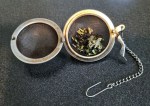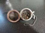 Per instructions printed on the packet, I heated my water to 212° F for brewing. While the water heated, I wondered how much the now unwrapped puer puck lovingly placed in my small tea ball would expand during the brewing process. After three minutes (also per instruction), I can report that the entire small tea ball was full of puer.