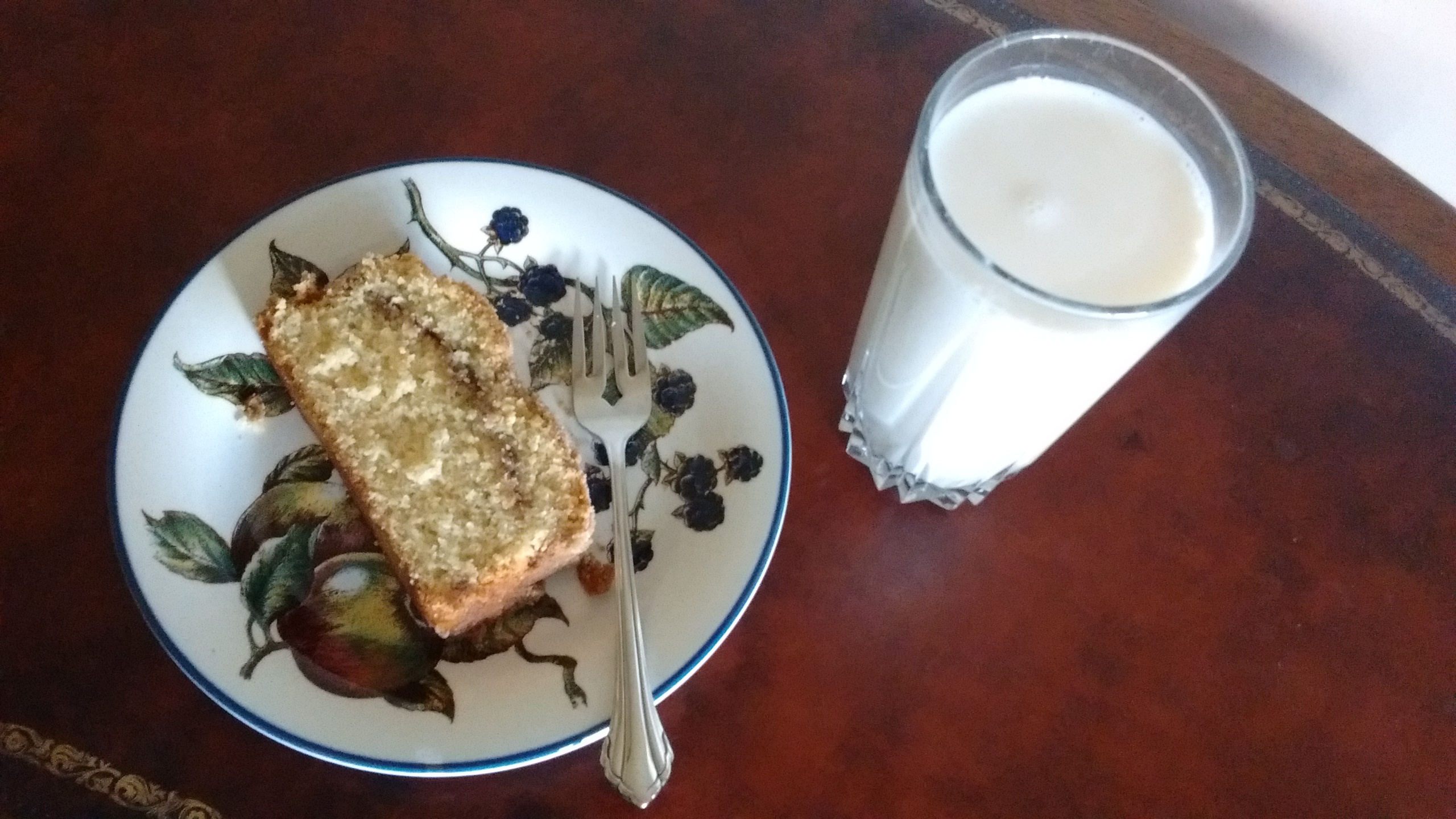 John’s Aunt Prudence suggested an end-of-summer barbeque to lift the boys’ spirits, but her sassy cook, Lucia, responded with a more immediate remedy: cinnamon cake. Lucia knew the benefit of comfort food, and the cake she served the boys was rich and delicious enough to drown anyone’s sorrows.